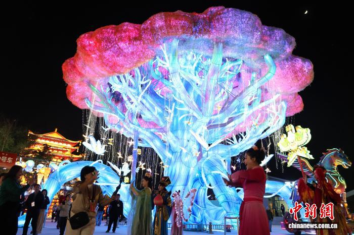 4月23日早,淄专花灯全彩乡年夜型灯组残暴多彩,NPC取搭客高兴互动。该景区具有年夜型花灯88组,融进NPC互动、非遗挨铁花等演艺名目,配套文创阛阓消耗场景,挨制陶醉式文旅领会。当早,2026年山东省文旅财产下量量成长年夜会落幕,聘请预会高朋观赏审核中心文旅名目。赵晓 摄